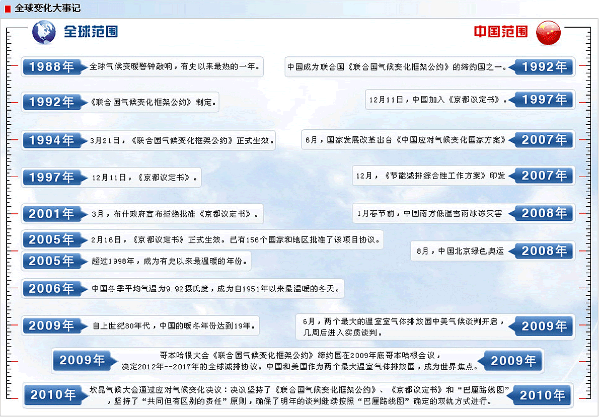 •由于CO2等引起的'温室效应',使全球气候明显变暖。科学家预测,到下世纪中叶,地球表面平均温度将上升1.5~4.5℃,导致南北极冰雪部分融化,世界海平面上升25~100厘米,北京、上海、伦敦、纽约等城市将被没入海底。数亿沿海居民将被迫迁居。